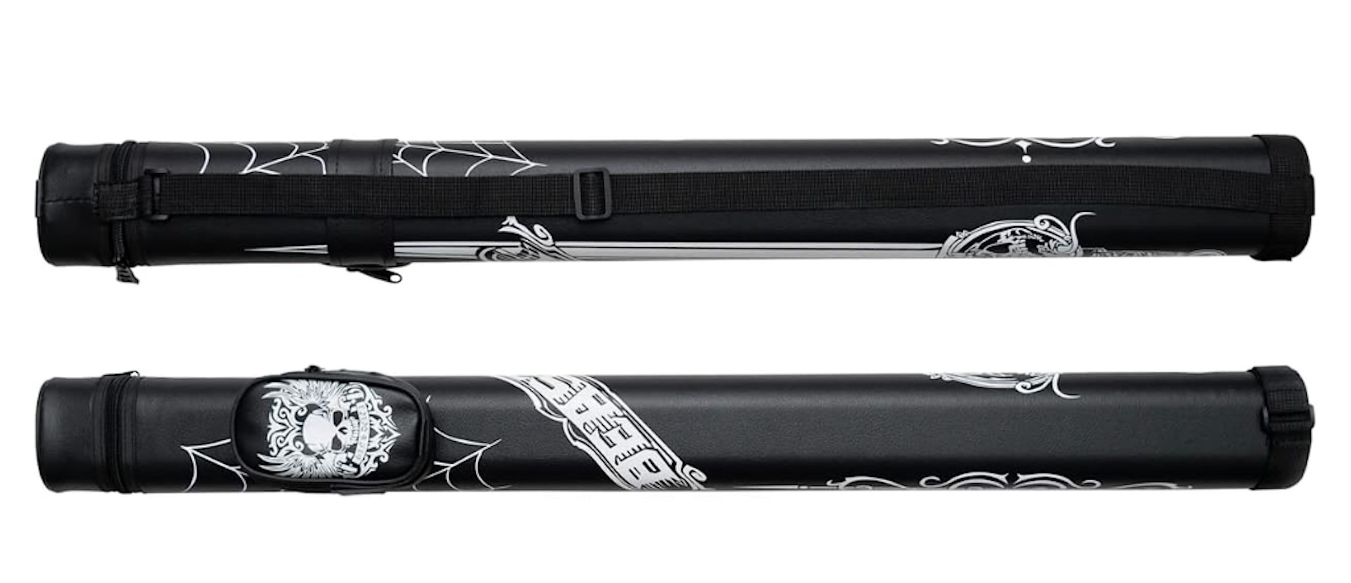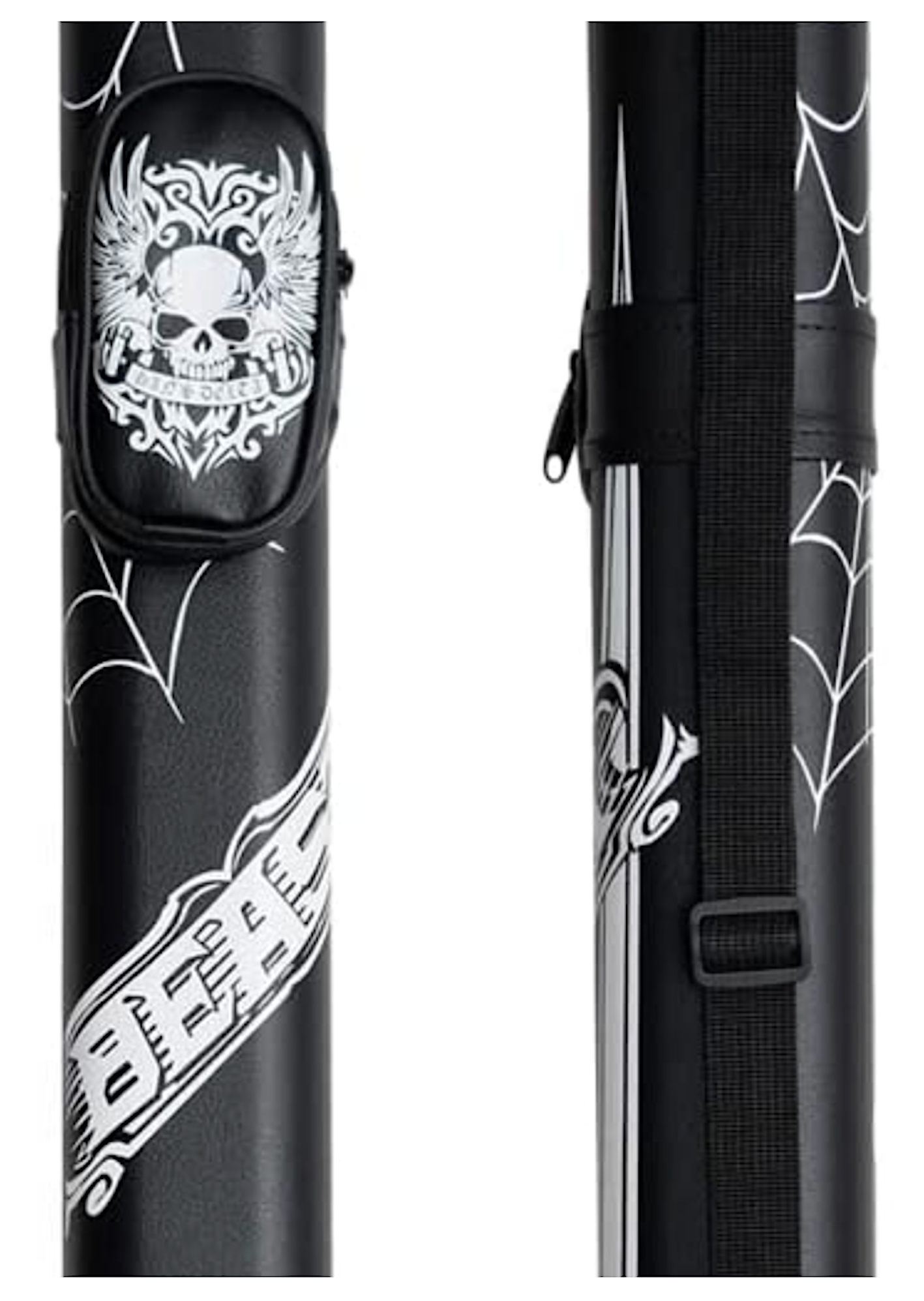 This Hans Delta oval pool cue case holds 1 butt and 1 shaft. The black case features bold attention getting Beast Graphics. Case features a convenient pocket storage. Adjustable shoulder strap.