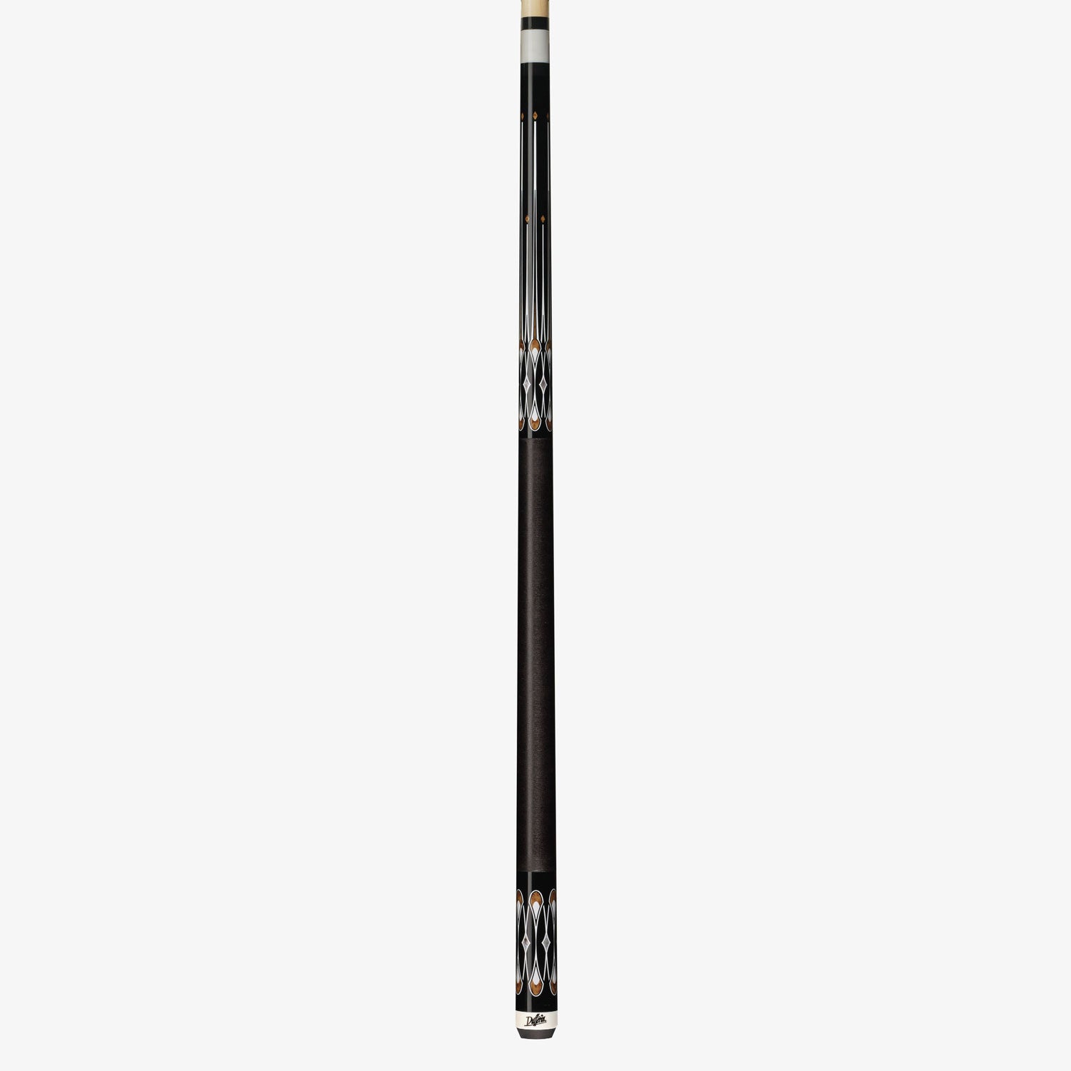 This new Dufferin® cue features an old smoke-stained Canadian Hard Rock Maple forearm and butt with graphic black & white points, pearled diamond accents, solid black double-pressed Irish linen wrap, and Everest tip.