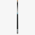 This Lucasi cue features Mystic Black forearm and butt sleeve with six-point imitation bone inlay points, blue recon stone & silver crush inlay accents, white windowpane inlays with blue recon diamond & silver crush dot accent inlays, white implex butt cap, and Quick-Release Uni-Loc joint.