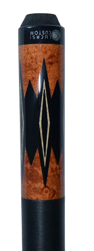 This sleek and simple Lucasi Custom cue features a midnight black butt, birdseye maple forearm, Irish linen wrap, custom 3/8 x 10 joint, and Zero Flexpoint Solid Core Low Deflection Technology Shaft.