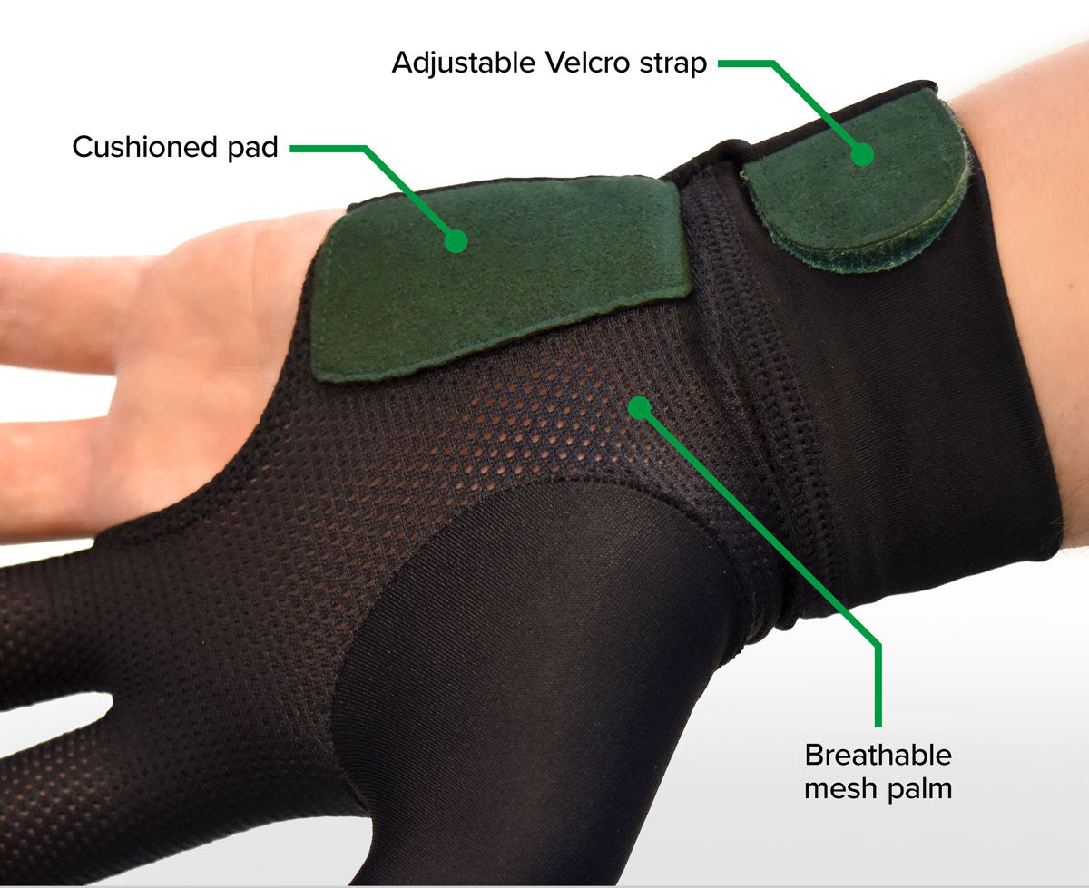 • Adjustable Velcro strap. Fingertip cut-outs for increased feel.