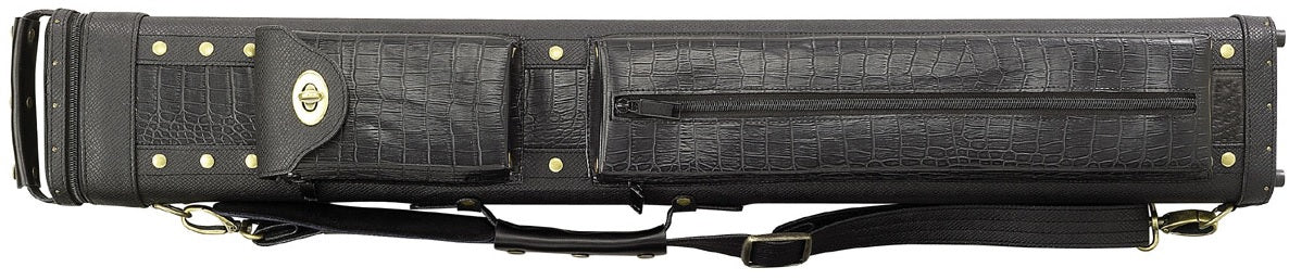 The C35D black/black cue case features a durable leatherette exterior with nylon interior dividers to store up to 3 butts and 5 shafts. Also features lots of great storage, a shoulder strap, side and top carrying handles, and hard plastic feet to prevent wear.