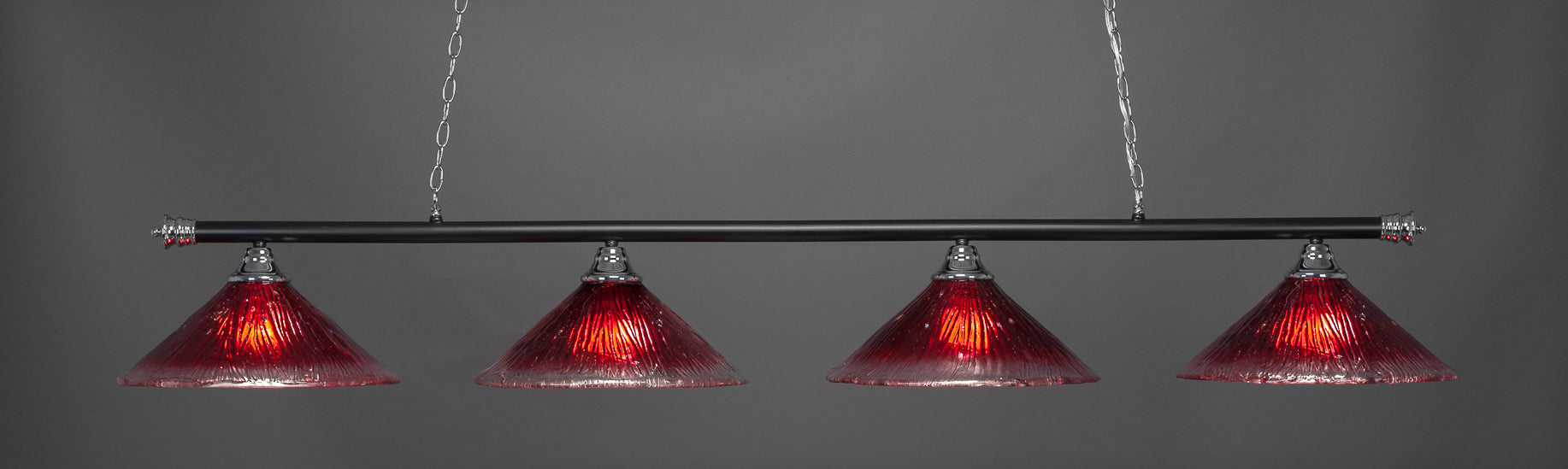 The 374-CHMB-716 light from Toltec is part of their Oxford series and is an excellent non-traditional choice for contemporary billiards table or island lighting. It is rated at 120V for indoor use and is designed for hardwired installation. The 374-CHMB-716 requires 4 Incandescent bulbs. Includes manufacturer 1-year warranty. Some assembly required (instructions included).
