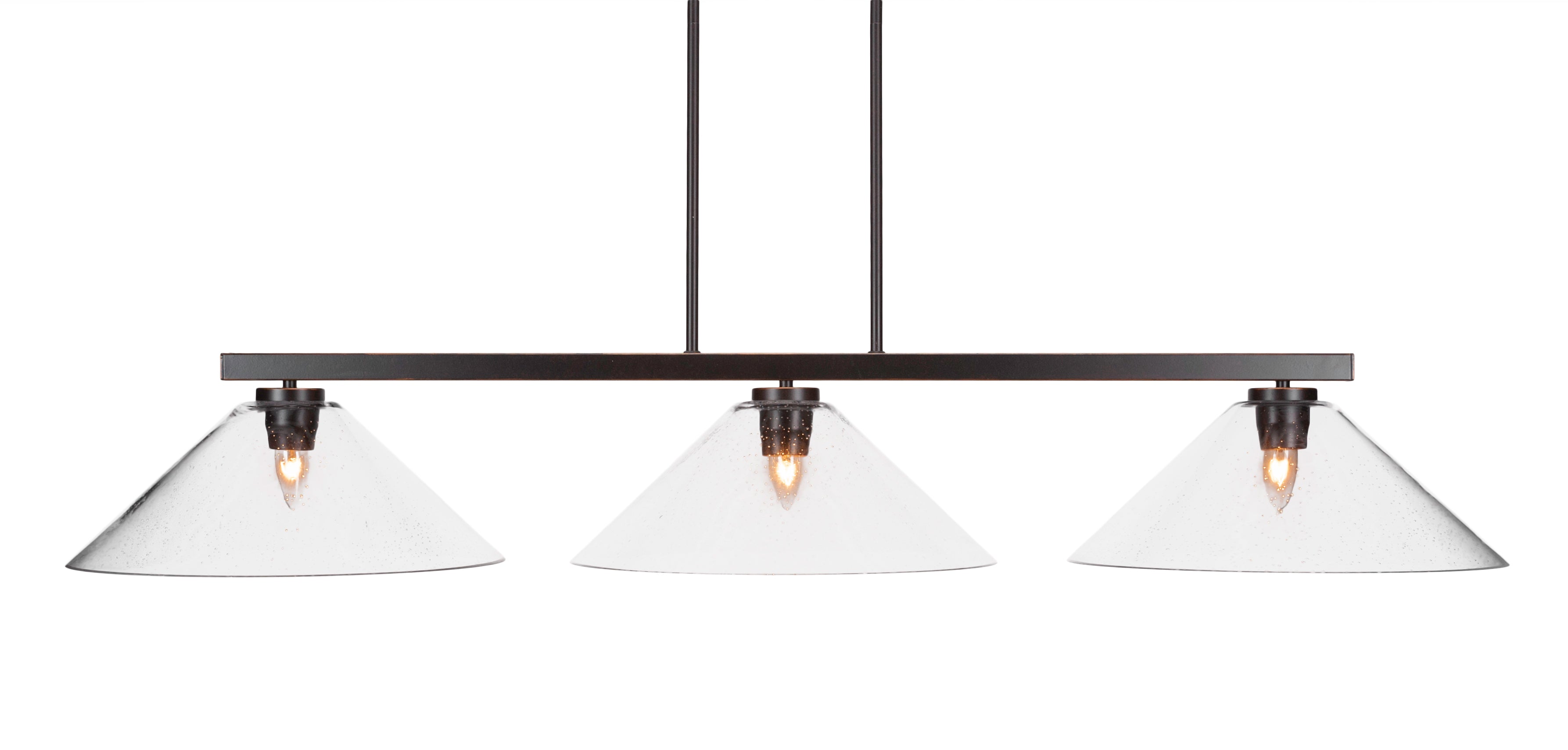 The 4523-DG-308 light from Toltec is part of their Atlas series and is an excellent non-traditional choice for contemporary billiard table or island lighting. It is rated at 120V for indoor use and is designed for hardwired installation. The 4523-DG-308 requires 3 Incandescent bulbs. Includes manufacturer 1-year warranty. Some assembly required (instructions included).