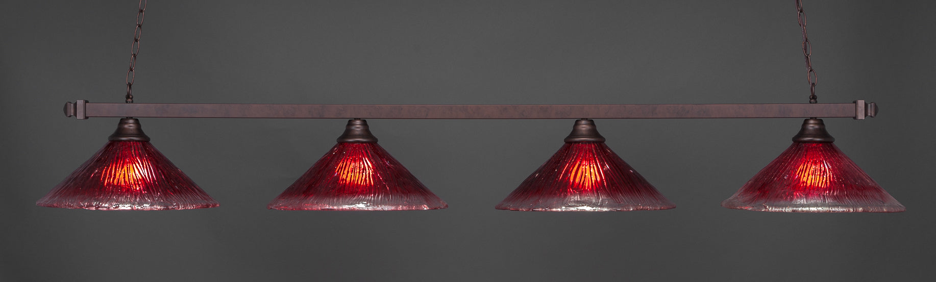 The 804-BRZ-716 light from Toltec is part of their Square series and is an excellent non-traditional choice for contemporary billiards table or island lighting. It is rated at 120V for indoor use and is designed for hardwired installation. The 804-BRZ-716 requires 4 Incandescent bulbs. Includes manufacturer 1-year warranty. Some assembly required (instructions included).