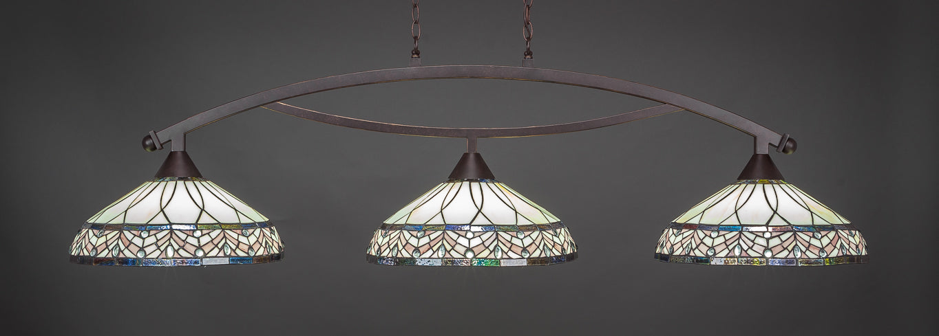 Toltec 873-DG-948 Bow 3 Bulbs Bar Billiards Pool Table Island Light