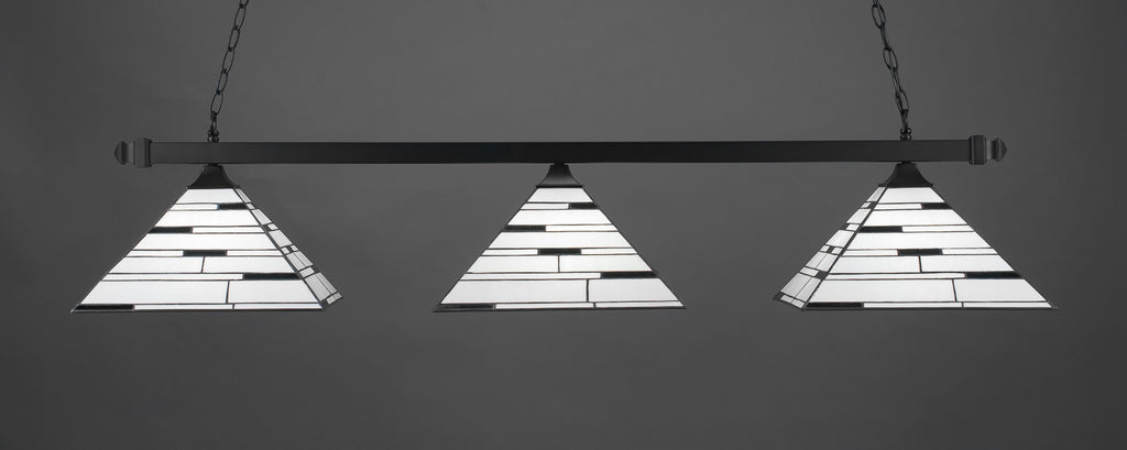 The 403-MB-952 light from Toltec is part of their Square series and is an excellent non-traditional choice for contemporary billiards table or island lighting. It is rated at 120V for indoor use and is designed for hardwired installation. The 403-MB-952 requires 3 Incandescent bulbs. Includes manufacturer 1-year warranty. Some assembly required (instructions included).