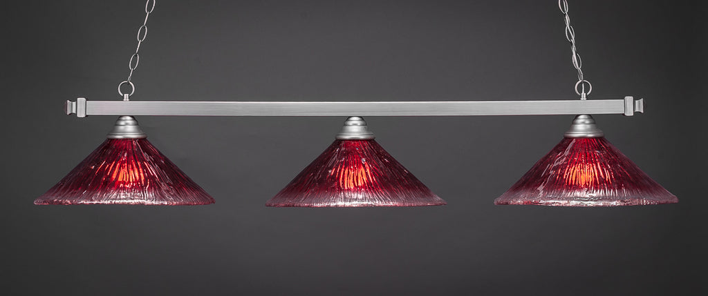 The 803-BN-716 light from Toltec is part of their Square series and is an excellent non-traditional choice for contemporary billiards table or island lighting. It is rated at 120V for indoor use and is designed for hardwired installation. The 803-BN-716 requires 3 Incandescent bulbs. Includes manufacturer 1-year warranty. Some assembly required (instructions included).