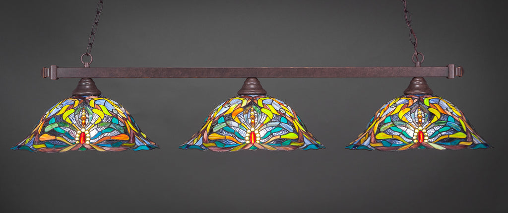 The 803-DG-990 light from Toltec is part of their Square series and is an excellent non-traditional choice for contemporary billiards table or island lighting. It is rated at 120V for indoor use and is designed for hardwired installation. The 803-DG-990 requires 3 Incandescent bulbs. Includes manufacturer 1-year warranty. Some assembly required (instructions included).