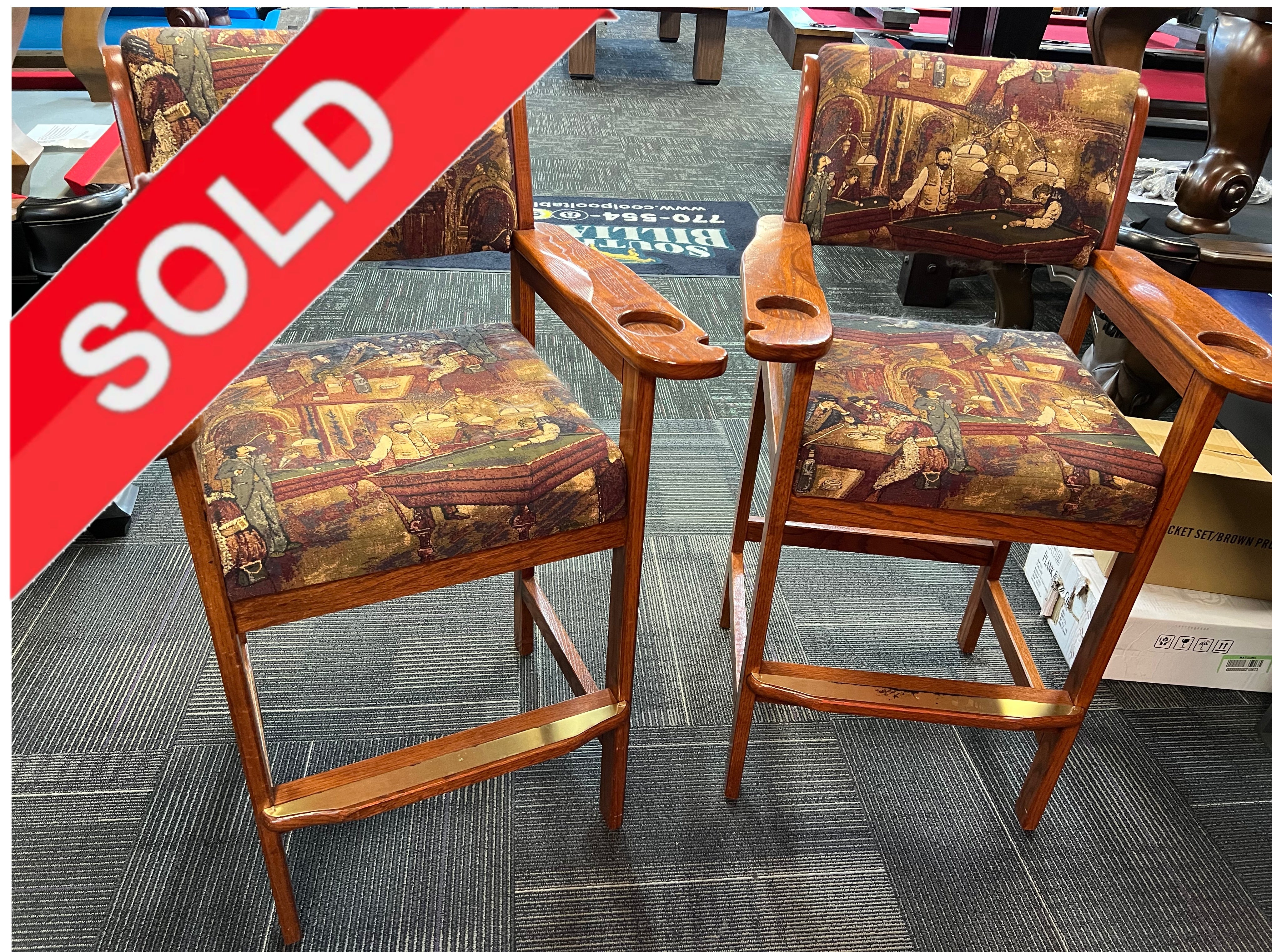 (SOLD) Used Pair of Whitaker Furniture Cherry Oak Spectator Chairs (for your Pool Table)