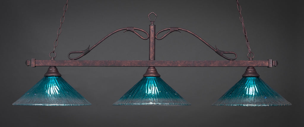 The 823-BRZ-715 light from Toltec is part of their Scroll series and is an excellent non-traditional choice for contemporary billiards table or island lighting. It is rated at 120V for indoor use and is designed for hardwired installation. The 823-BRZ-715 requires 3 Incandescent bulbs. Includes manufacturer 1-year warranty. Some assembly required (instructions included).