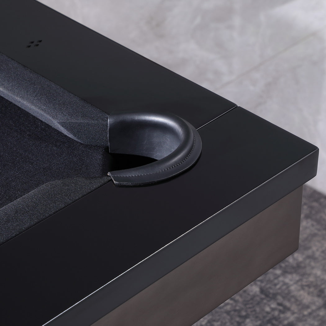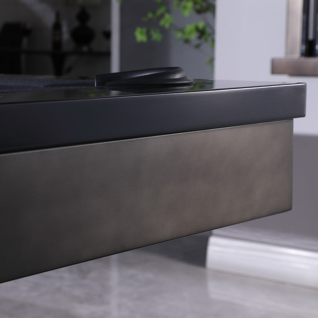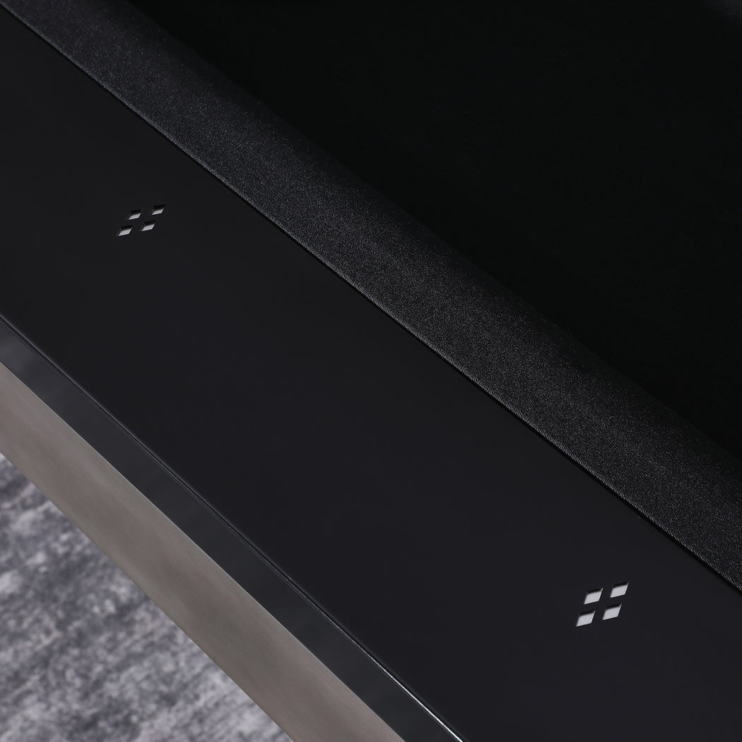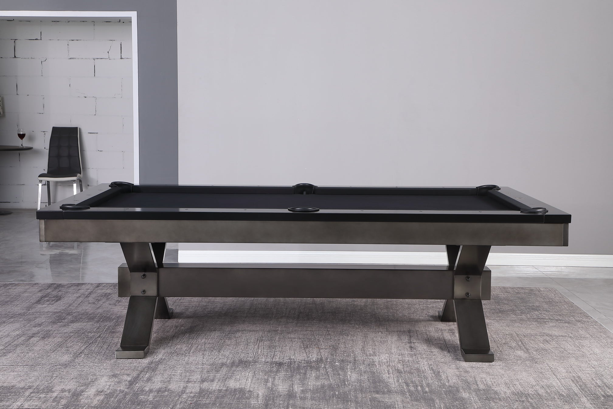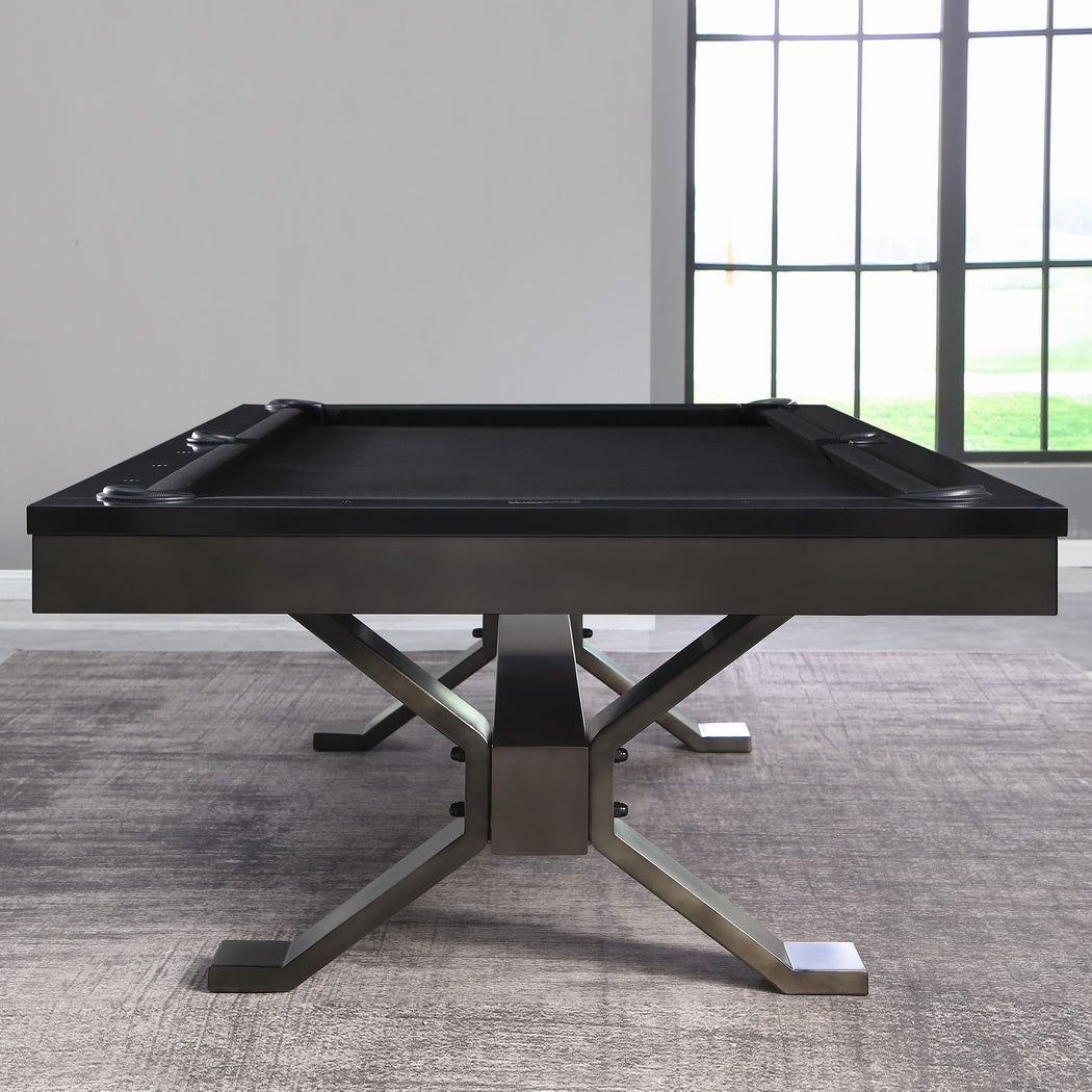This steel pool table has a Gunmetal Grey and Low Sheen Black finish.