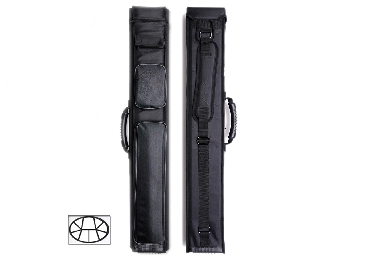 A Delta cue case is a stylish and effective way to protect your cues during travel and play. This Delta Knight Series hard case is solid black with the capacity for 3 butts and 6 shafts.