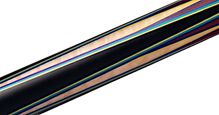 - Butt Sleeve: Four Short Inlaid Points in Indigo, Bright Yellow, and Curly Natural Maple