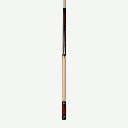This modern traditional Rage cue features 100% Hard Rock Maple construction with graphic cocobolo forearm and butt, graphic black and white points with blue diamond accents, Implex joint and sleek wrapless handle.