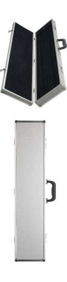 The Action 2x4 Cue Case - Silver features a high quality design that will protect your two-piece cues from the elements. It can store and protect up to 2 Butt x 4 Shaft, while providing ease of travel for you and your cues. Features Include: Brand: Action Color: Silver Cue Capacity: 2 Butt x 4 Shaft Hard Case Design. This Hard Box Case by Action is made of aluminum casing, has silver clasps, and a plastic handle. It has aluminum corners, edges, and is 35" in length. The lining is a black velvet finish foam, and has a 2.5" storage compartment and combination lock.