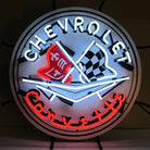 Neonetics Neon Signs feature multi-colored, hand blown neon tubing. The glass tubes are backed by a beautiful silkscreened full-color image, and the entire sign is supported by a black finished metal grid. The sign can be hung against a wall or window they can even sit on a shelf. Neonetics neon signs have a warm mesmerizing glow, and are powered by industrial strength transformers, which operate silently and more efficiently than incandescent bulbs. All you do is hang it up and plug it in _ no assembly or special wiring required. Product Name: CORVETTE NEON SIGN WITH SILKSCREEN BACKING Condition: Brand New In Manufacturer's SAFE Packaging Dimensions: 24W x 24H x 4DLight: Hand Blown Glass Neon with Powerful Transformer Plug: American Standard 110V Wall Outlet.