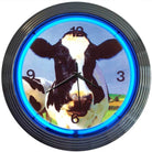 Neonetics Neon Clocks feature a hand blown ring of real glass neon, generating 25 watts of light. The neon clocks have glass faces and feature chrome finished, multi-tiered art deco styles rims. This clock features a chrome rim with a single ring of blue neon. The quartz movement clock operates on one AA battery (not included). The neon light is powered by an AC adapter (included) that plugs directly into a wall outlet. Give your home the fabulous glow of real neon! Product Name: Cow Neon Clock Condition: Brand New In Manufacturer's Packaging Dimensions: 15" Diameter x 3" Deep Light: Hand Blown Glass 25 Watt Neon Clock: Quartz Movement (Operates On One AA Battery - Not Included) Clock Hands: Hour, Minute & Second Power Source: AC Adapter (Included) That Plugs Into American Standard Wall Outlet Rim: Multi-Tiered Art Deco.