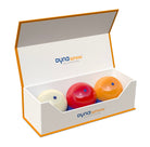 Set contains 1 white ball, 1 red ball, 1 yellow ball and a cleaning cloth. Each ball is marked with 6 blue dots for increased feedback on spin. All verification tests tests performed under controlled conditions: Temp 22-25 degrees Celsius, humidity 50% +/- 5%.