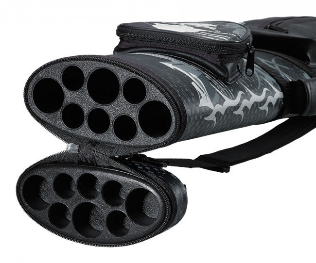 Maximize your protection and your capacity with this 3 butt, 5 shaft pool cue case by Eight Ball Mafia. As is tradition, this Eight Ball Mafia case is all about the skulls, with a giant white skull emblazoned on the pocket. From a protection perspective, it doesn't get much better than this. The molded tubes will keep your butts and shafts nice and safe while the pockets provide a ton of storage space for your accessories.