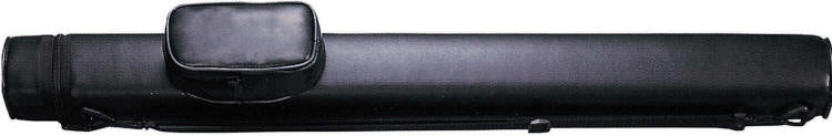 J&J hard pool cue case. Made from black vinyl, this case holds 1 butt and 2 shafts and comes with a pocket and a strap.