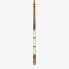 This classically-styled Lucasi Custom cue features a forearm and butt with six-point black & white inlay points with white diamond accents, sleek wrapless white handle accented with maple, black & silver rings, Implex butt cap, quick-release Uni-loc joint, and Zero Flexpoint Solid Core Low Deflection Technology Shaft.
