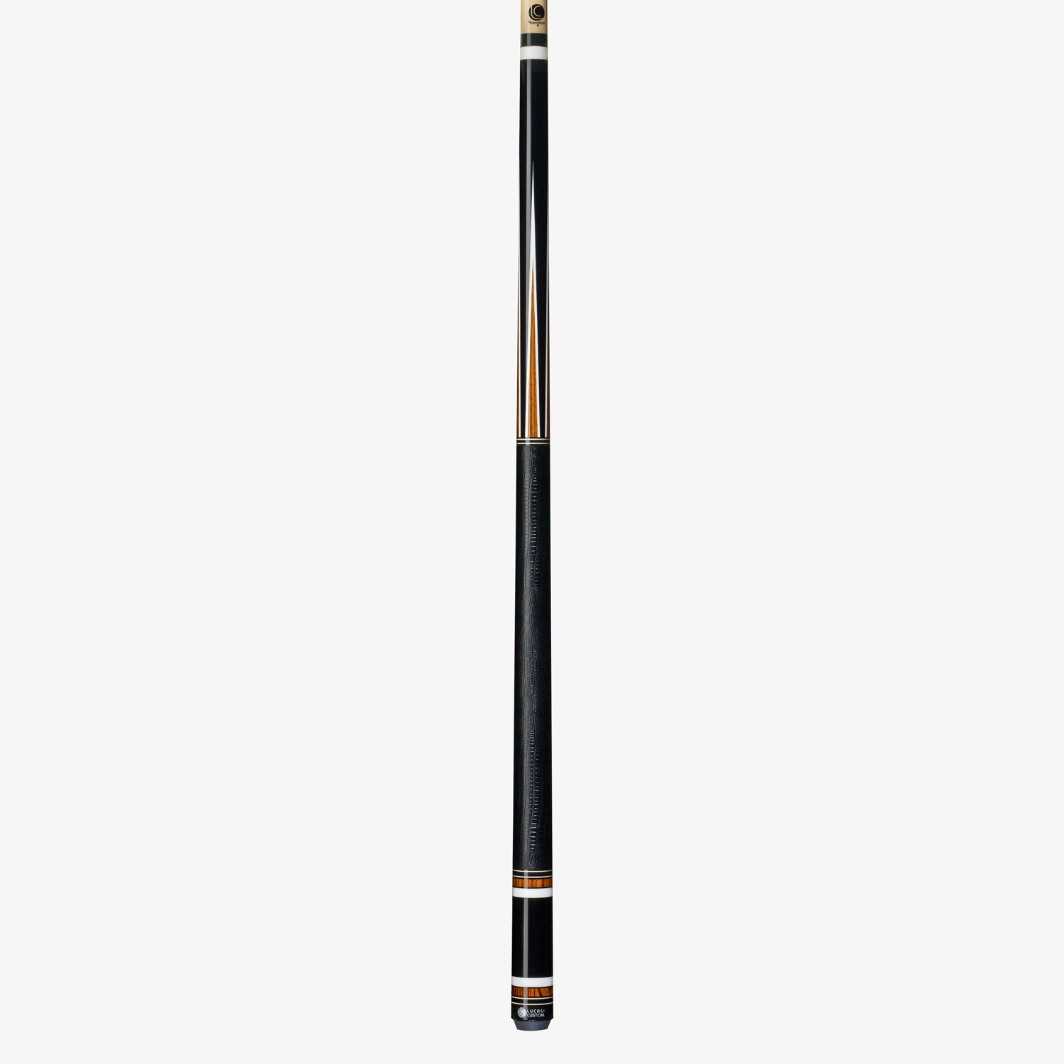 This sleek and simple Lucasi Custom cue features a Mystic Black maple forearm and butt with Bocote, imitation bone and maple rings, lizard embossed black leather wrap, custom 3/8 x 10 joint, and Zero Flexpoint® Solid Core Low Deflection Technology Shaft. Additional technology shaft upgrades available.