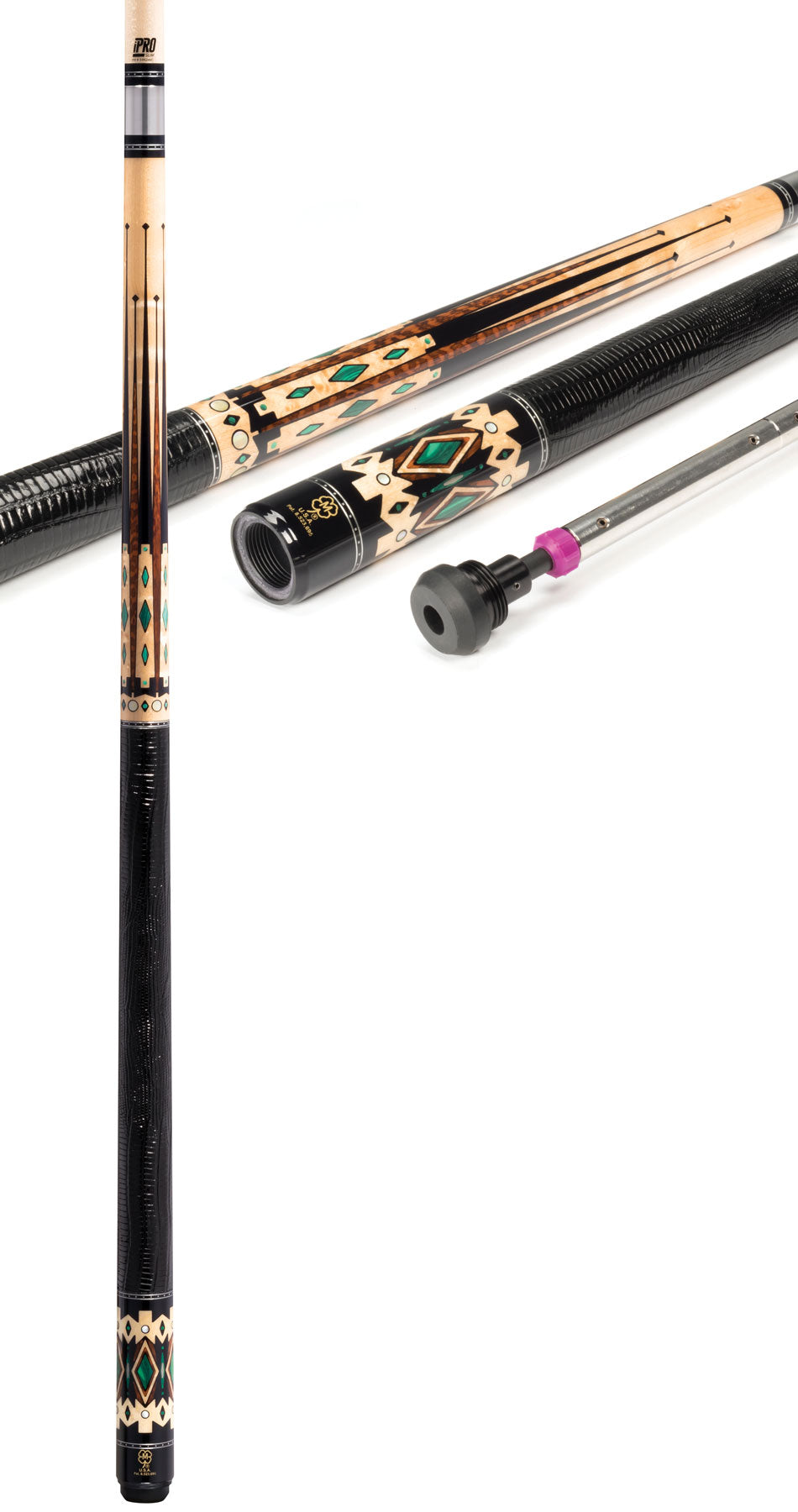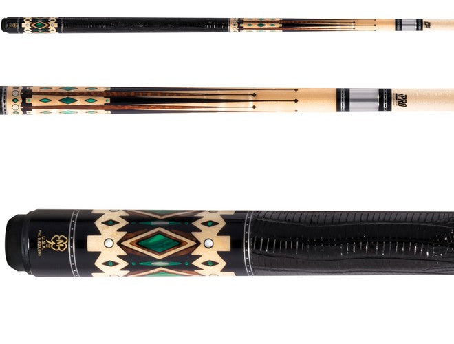 The McDermott Cue of the Year raises the bar of excellence in custom pool cues. The Cue of the Year uses the rarest materials from around the world that are combined with exotic woods. Legendary cues inspired by a cuemaking legend. With only 100 produced, this cue is sure to be a desired collectible for years to come. The beautiful green malachite, snakewood & black urethane points display the craftsmanship that only a McDermott cue can possess.