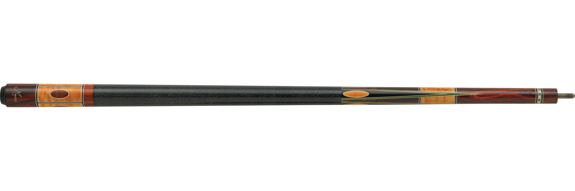 • Joint collar: Cocobolo with a set of white and black composite rings enclosing an alternating set of green and maple veneer squares