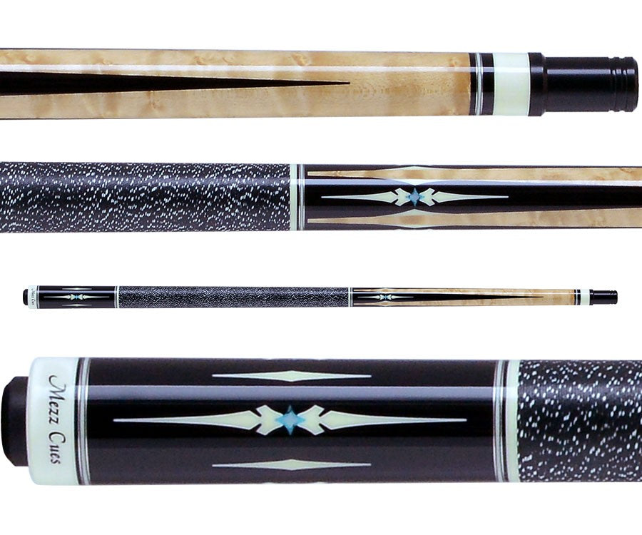 The Mezz ZZA158 two-piece pool cue is designed for playing/shotmaking and measures 58 in. in length. The 29 in. solid wx700 maple shaft is designed with a pro taper and a 12.5 mm Kamui medium tip. 1 shaft is included. This cue is weight adjustable from 18-21 oz.