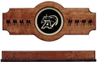 These quality LICENSED COLLEGIATE CUE RACKS are made here in the USA of maple wood and are decorated with a full color laminated school logo. Available in our standard finishes: Pecan, Oak and Black.