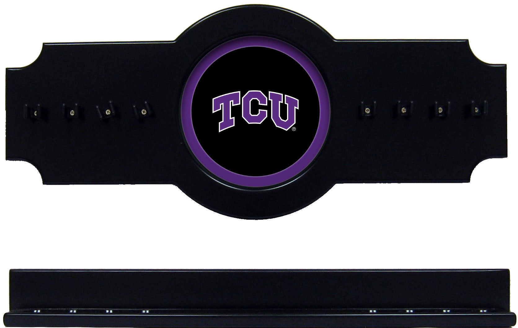 NCAA TCU 2 pc Hanging Wall Pool Cue Stick Holder Rack - Black