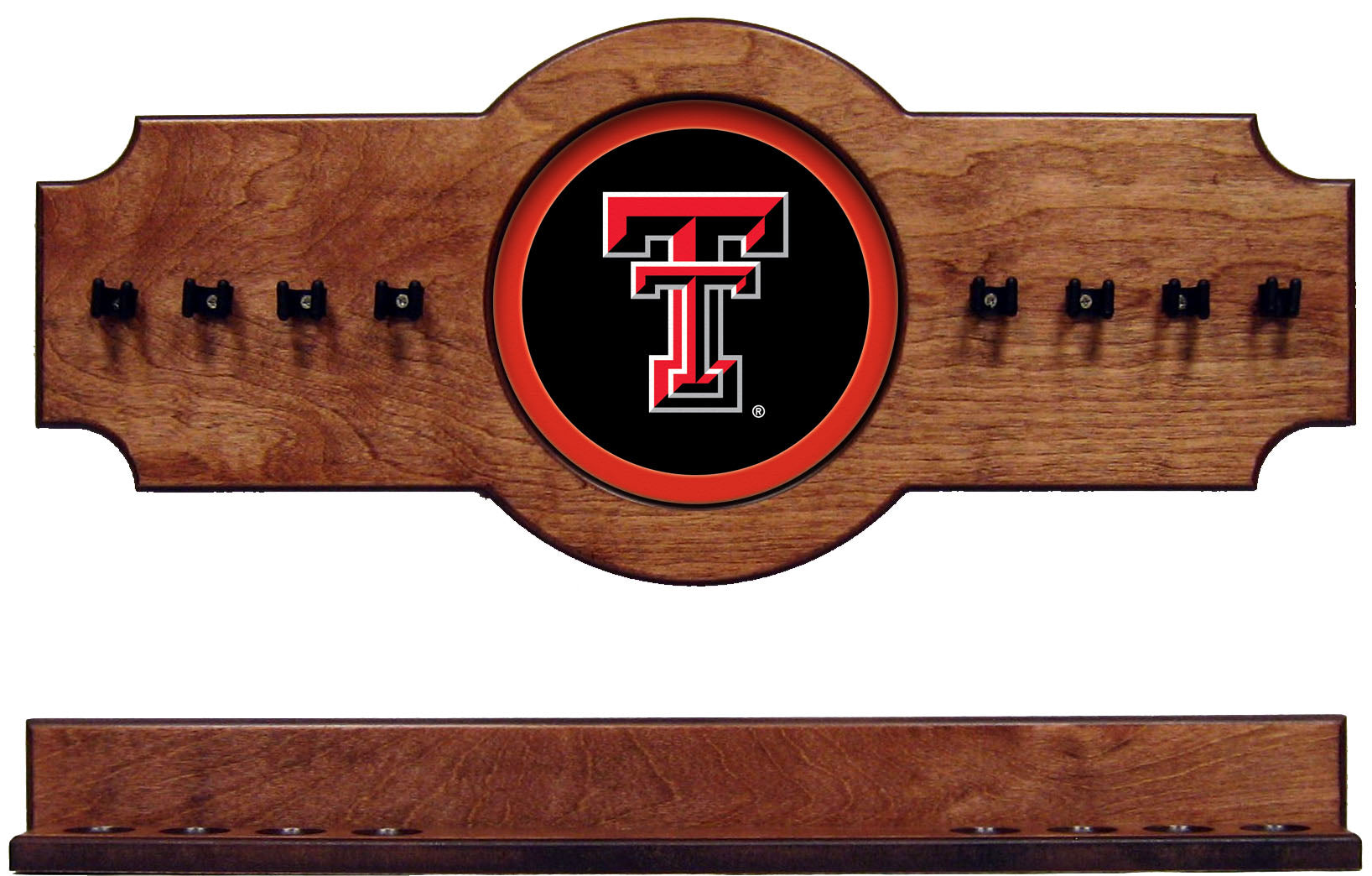 NCAA Texas Tech Red Raiders 2 pc Hanging Wall Pool Cue Stick Holder Rack - Pecan