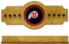 These quality LICENSED COLLEGIATE CUE RACKS are made here in the USA of maple wood and are decorated with a full color laminated school logo. Available in our standard finishes: Pecan, Oak and Black.