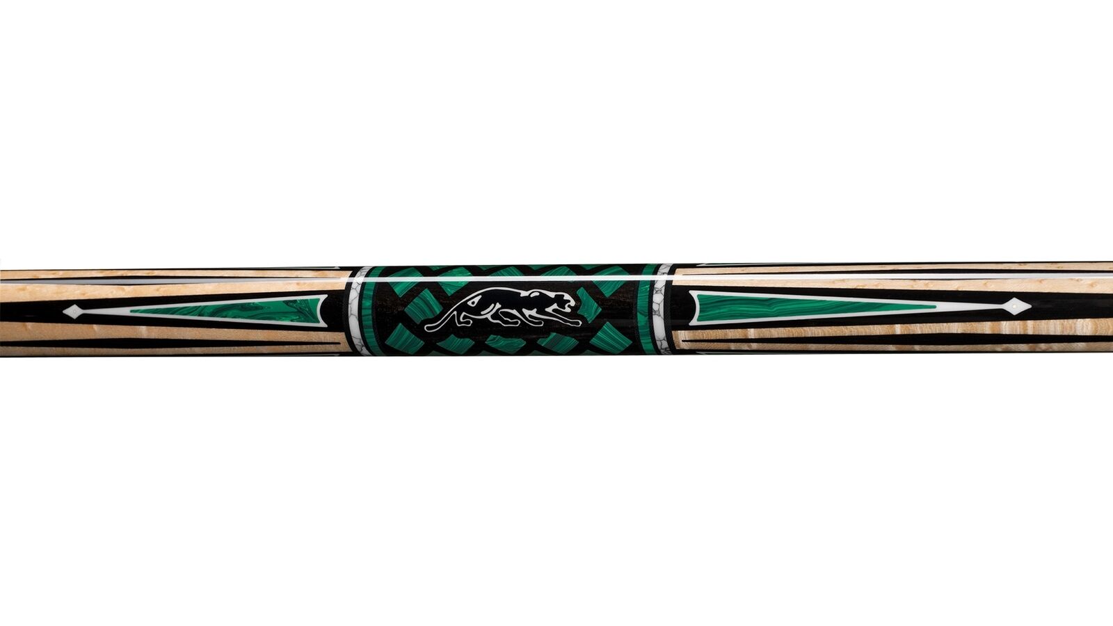 This listing is for the Surute butt (lower portion of the cue) only. Shafts are sold separately.Revel in the artistry of the majestic Śurutē Panthera special edition Predator cues. Designed in partnership with Jacoby, these Panthera cues feature Ebony and Curly Maple wood with markings as unique as the predators that inspired them. Each cue is adorned with White Turquoise, Malachite, Micarta and Rose Gold accents. Limited to only 100 of each model, individually signed and numbered. A cue whose beauty will leave others green with envy. Śurutē Panthera is inspired by the white Bengal tiger from India where the word Śurutē comes from, meaning anew or beginning. The green color is a representation of spring and like spring, Śurutē is a symbol of renewal or new beginnings.