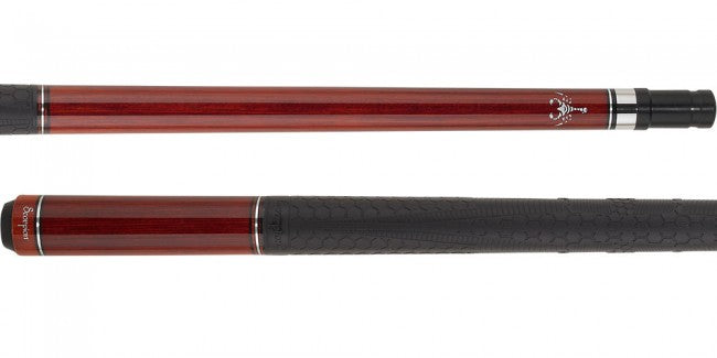The Scorpion JAR10 two-piece pool cue is designed for playing/shotmaking and measures 58 in. in length. The 29 in. solid hard rock maple shaft is designed with TPS (Telson Performance System) and a 12mm Aculeus layered tip with carbon fiber pad. 1 shaft is included. This cue is weight adjustable from 18-21 oz.