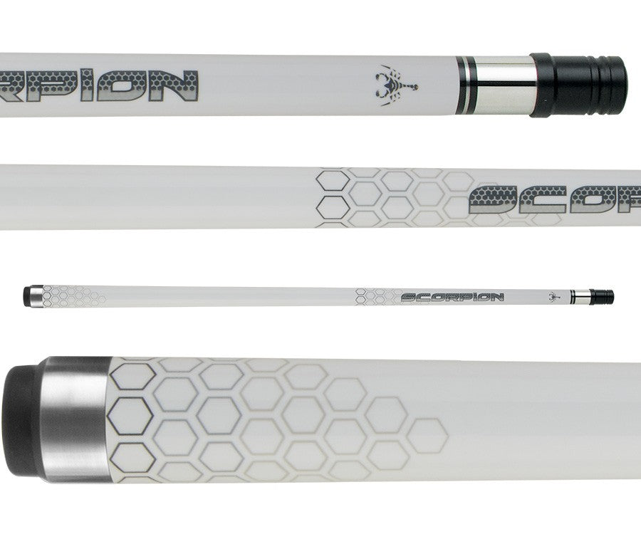 The Scorpion SCO118 two-piece pool cue is designed for playing/shotmaking and measures 58 in. in length. The 29 in. solid fiberglass shaft is designed with a pro taper and a 13 mm Water Buffalo medium tip. 1 shaft is included. This cue is weight adjustable from 18-21 oz.