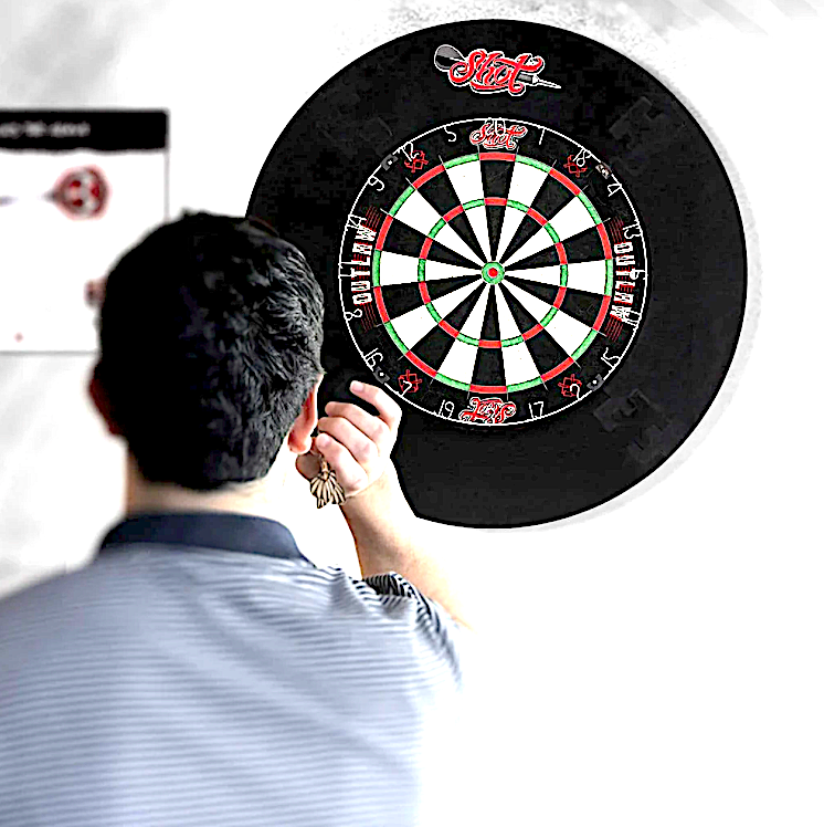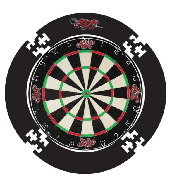 Start protecting your walls from stray darts in seconds, with the Shot 4 Piece Dartboard Surround. Its four sections fit easily together around your standard, full-size bristle dartboard, with a clever jigsaw connection that needs no fixings or mountings. Vital to your practice set up, its inch-thick, high-density foam hangs onto your darts safely, till you retrieve them. Go double the distance with the sleek matte black surface – just flip it and reverse it. This injection-moulded high-density foam protection ring easily fits around a standard bristle dartboard, no fixings required!