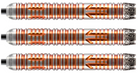 Three distinct grip patterns have a different feel for each; this flexible dart set can be thrown from the front, mid or back sections. The rounded bullnose flows to an area with V cuts for a no-slip advantage, and the cross patterns provide a multi-directional feel. A classic ring grip completes the midsection of the set, which adds consistency to the throw. The unique, precision machined "Tracks" grip prevents horizontal and vertical slip and provides a useful point of reference.