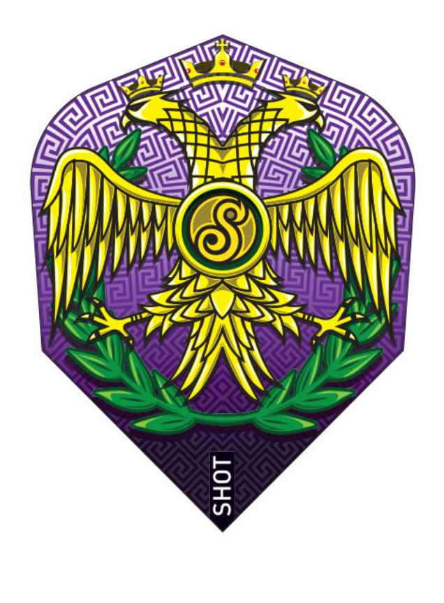 The double-headed Eagle is an ancient symbol of eternal power. It was the symbol of rank of a Roman Caesar and was used by rulers wearing the title of kaiser, tsar and basileus, and also by rulers entitled imperator. The supreme commanders attached this cypher to their shields, sometimes with a garland of laurel. Shot Darts are finished with distinctive dart flights which are hand drawn and crafted by our in-house design team. Standout graphics echo each individual dart theme perfectly.
