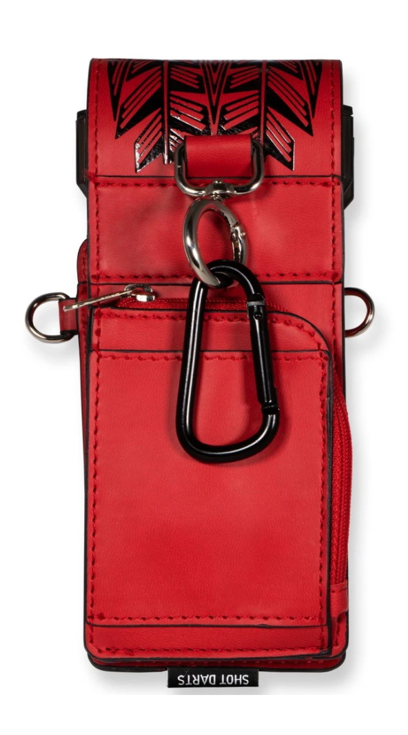 Make your mark. Wear your heart on your sleeve and your tribe on your hip. Just like body art, each case in the Shot Darts Inked range is embossed with its own tattoo. For this Inked Dart case, ‘Ta Moko’ – Shot collaborated with New Zealand-based designer Julie Paama-Pengally. The main design "Nga Hau e wha" - the four winds is a Maori saying that expresses the bringing together of people from the four corners of the world. This Darts Wallet suits both steel and soft tip darts and comes prepared with a high-quality dart caddie holder so your darts are always ready for play. There are pockets for spares, and a slot for your player's card to keep your gear organized. This Darts case with it's tough plastic caddy included, it stores 3 fully assembled steel tip or soft tip darts. Zipped compartments for dart accessories storage, dart flights, dart shafts, soft tip points. Tough, carabiner clip-on system included. *This dart case will last but it's cardboard packaging won’t. Place it in your recycle bin – and play on. Darts not included. Other colors available.