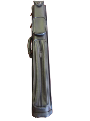 This 2x4 combo case is a combination hard case/soft case that holds 2 butts and 4 shafts. This case is made of a high grade simulated leather that looks and feels like the real thing! The combination case gives the best of both worlds in a soft and hard combination. The side where the shafts go has rigid tubes. If you are considering a two cue case, this is a great chance to get one at a fraction of the cost. The case has a small accessory compartment for chalk, tip tools and other related pool items. The long accessory pouch also has a separate zippered pouch for your jump butt so it doesn't get scratched from your accessories. The case also has a heavy high grade quality zipper which is not usually found on similar cases in this price range. Also featured on this case is a carrying handle on the side as well as a adjustable shoulder strap. Case will hold shafts up to 31.5" and butts up to 30.5". Small pouch is 3" x 6 1/2", big pouch is 3" x 16 1/2". Case features springs at the bottom of the tubes where the butts are stored to reduce movement of the cue. Case dimension without pockets is 4" x 5" by 33.5".