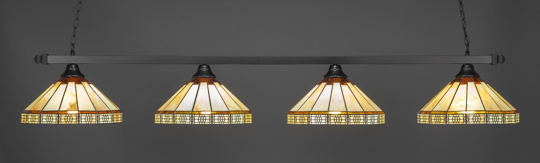 The 804-MB-964 light from Toltec is part of their Square series and is an excellent non-traditional choice for contemporary billiards table or island lighting. It is rated at 120V for indoor use and is designed for hardwired installation. The 804-MB-964 requires 4 Incandescent bulbs. Includes manufacturer 1-year warranty. Some assembly required (instructions included).
