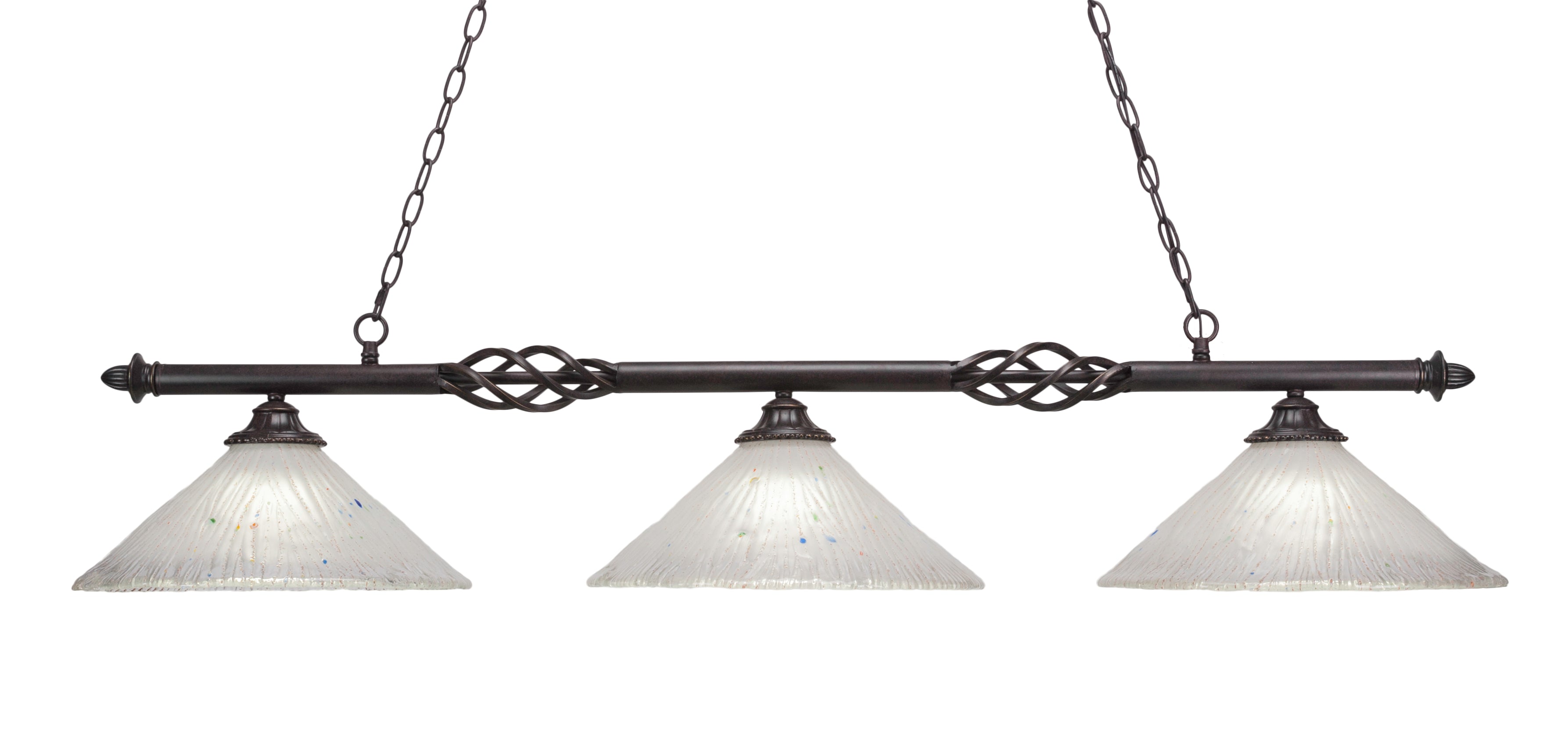 The 863-DG-711 light from Toltec is part of their Eleganté series and is an excellent non-traditional choice for contemporary billiards table or island lighting. It is rated at 120V for indoor use and is designed for hardwired installation. The 863-DG-711 requires 3 Incandescent bulbs. Includes manufacturer 1-year warranty. Some assembly required (instructions included).