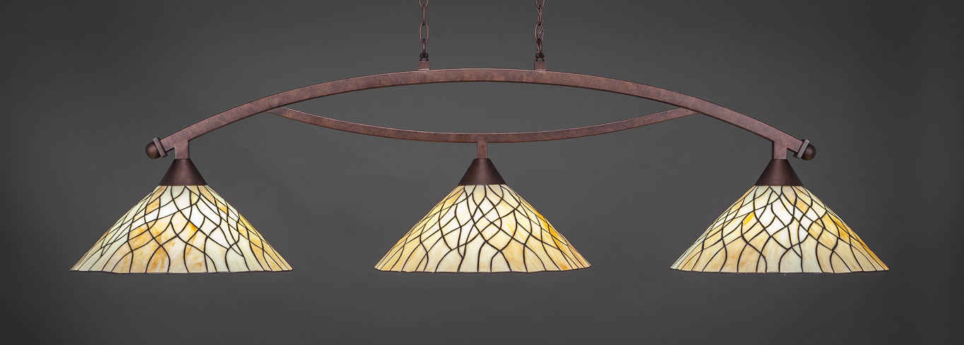 Toltec 873-BRZ-911 Bow 3 Bulbs Bar Billiards Pool Table Island Light