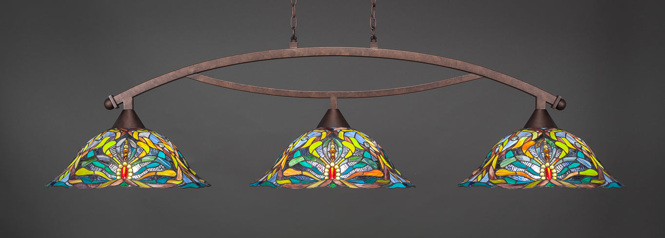 Toltec 873-BRZ-990 Bow 3 Bulbs Bar Billiards Pool Table Island Light