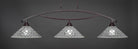 The 873-DG-411 light from Toltec is part of their Bow series and is an excellent non-traditional choice for contemporary billiard table or island lighting. It is rated at 120V for indoor use and is designed for hardwired installation. The 873-DG-411 requires 3 Incandescent bulbs. Includes manufacturer 1-year warranty. Some assembly required (instructions included).
