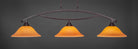 The 873-DG-622 light from Toltec is part of their Bow series and is an excellent non-traditional choice for contemporary billiard table or island lighting. It is rated at 120V for indoor use and is designed for hardwired installation. The 873-DG-622 requires 3 Incandescent bulbs. Includes manufacturer 1-year warranty. Some assembly required (instructions included).