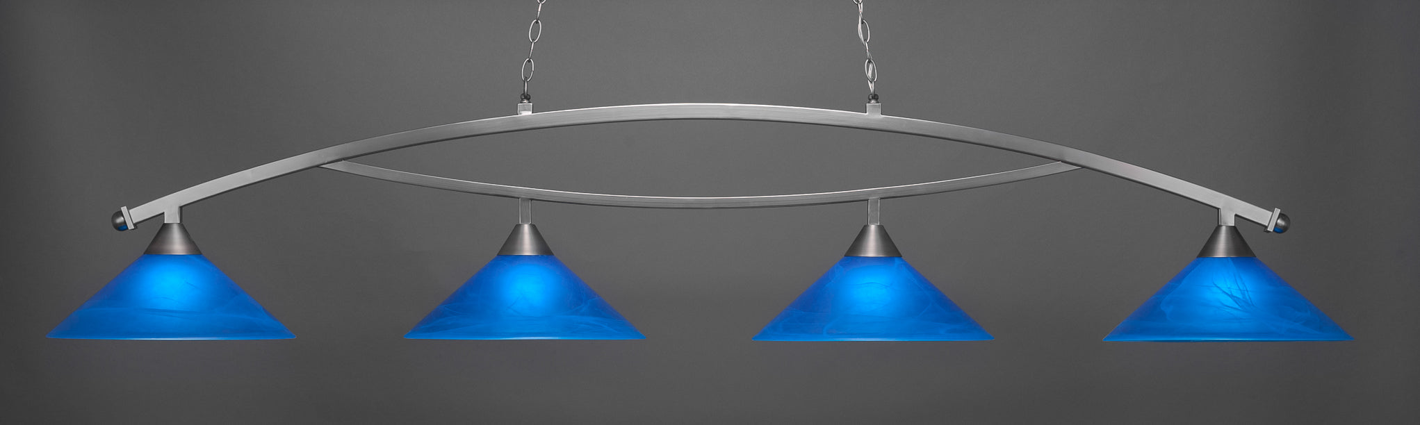 The 874-BN-415 light from Toltec is part of their Bow series and is an excellent non-traditional choice for contemporary billiard table or island lighting. It is rated at 120V for indoor use and is designed for hardwired installation. The 874-BN-415 requires 4 Incandescent bulbs. Includes manufacturer 1-year warranty. Some assembly required (instructions included).