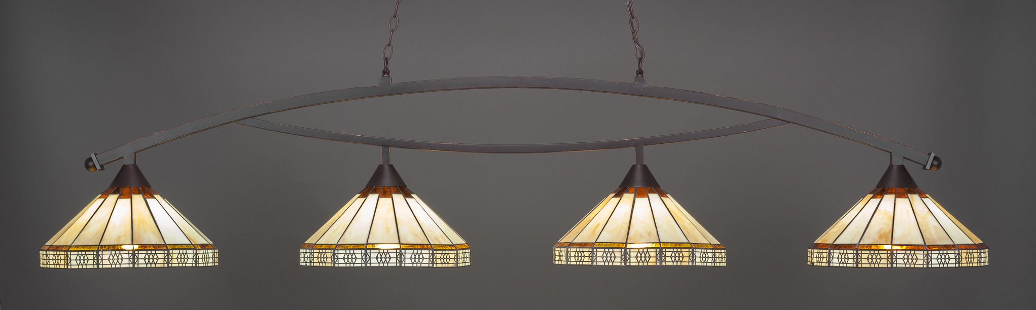 Toltec 874-DG-964 Bow 4 Bulbs Bar Billiards Pool Table Island Light